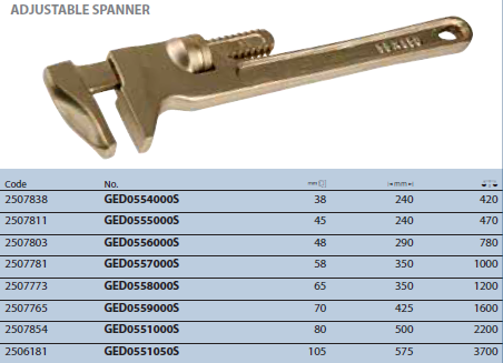 Mỏ lết làm bằng nguyên liệu đồng cứng đặc biệt chống phát tia lửa điện